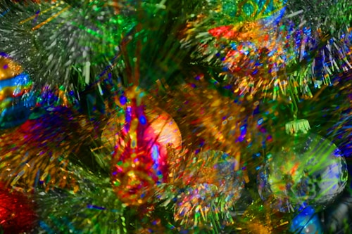 Festive holiday party with vibrant green-lime accents and joyful employees celebrating together.